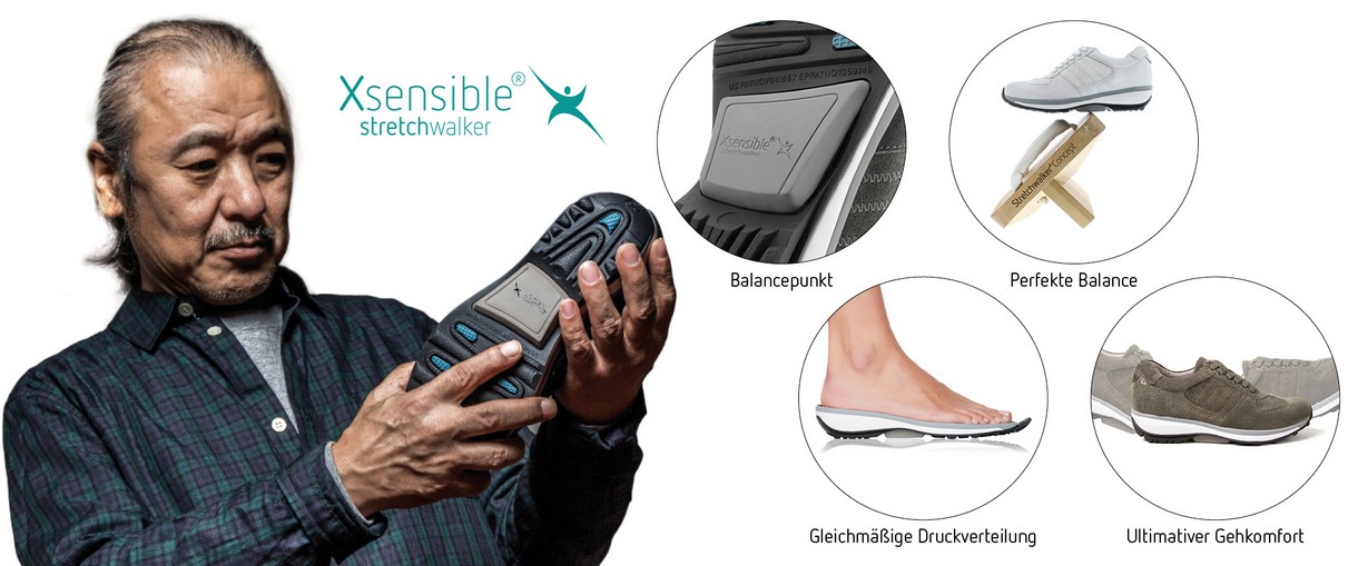 Der japanische Erfinder Tetsuya Nosaka erkannte als Erster, dass dieses uralte japanische Sandalenkonzept auch auf moderne Schuhen übertragen werden kann. Zusammen mit ihm haben wir den Xsensible Stretchwalker entwickelt: einen stilvollen Schuh mit einem einzigartigen Balancepunkt in der Mitte der Sohle. Dieser Balancepunkt sorgt für ein optimales Gleichgewicht und eine ausgeglichene, gesunde Körperhaltung.